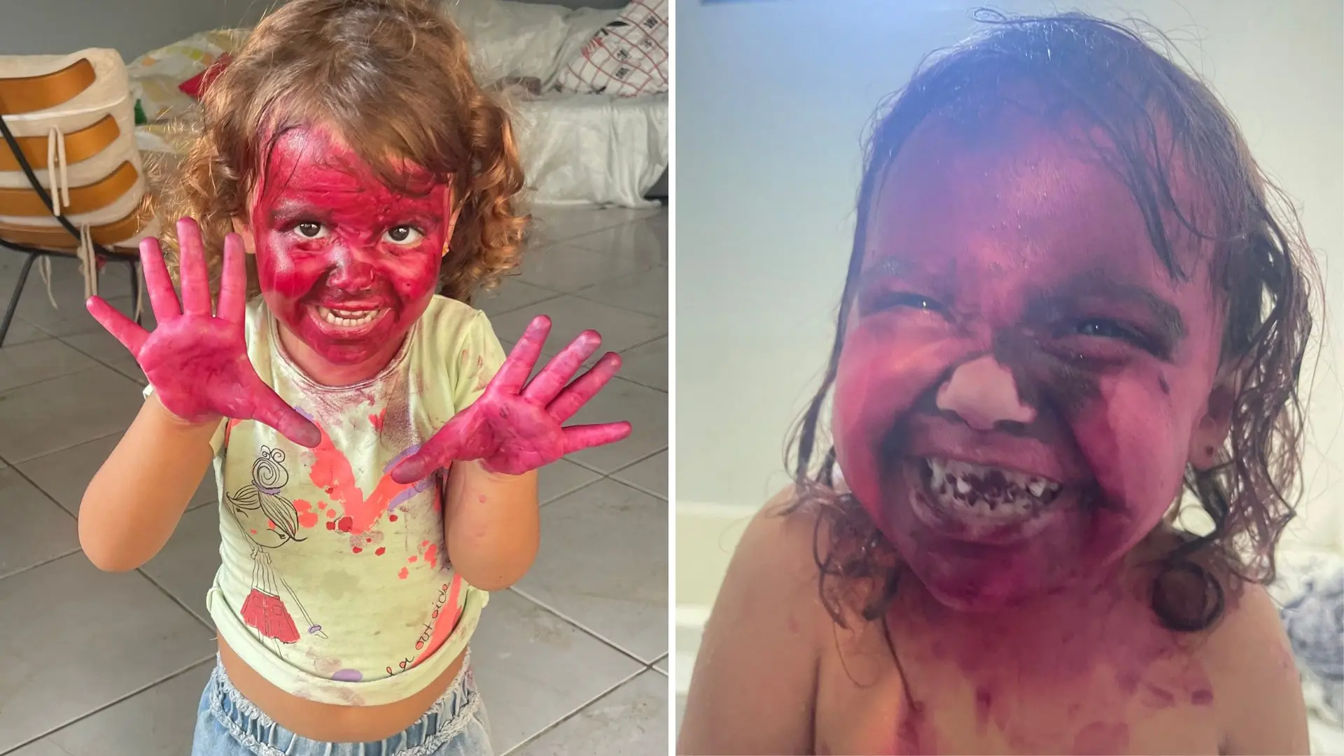 Menina de 3 anos pinta rosto e mãos com batom de alta fixação da mãe: 'Mais de 10h para tirar tudo'
