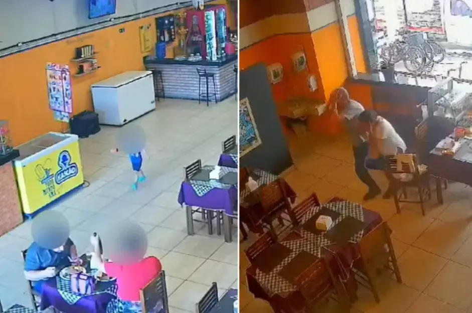 Quem estava no restaurante no local reage em choque ao ver o acidente. Populares colocam as mãos na cabeça ao presenciar o acidente.