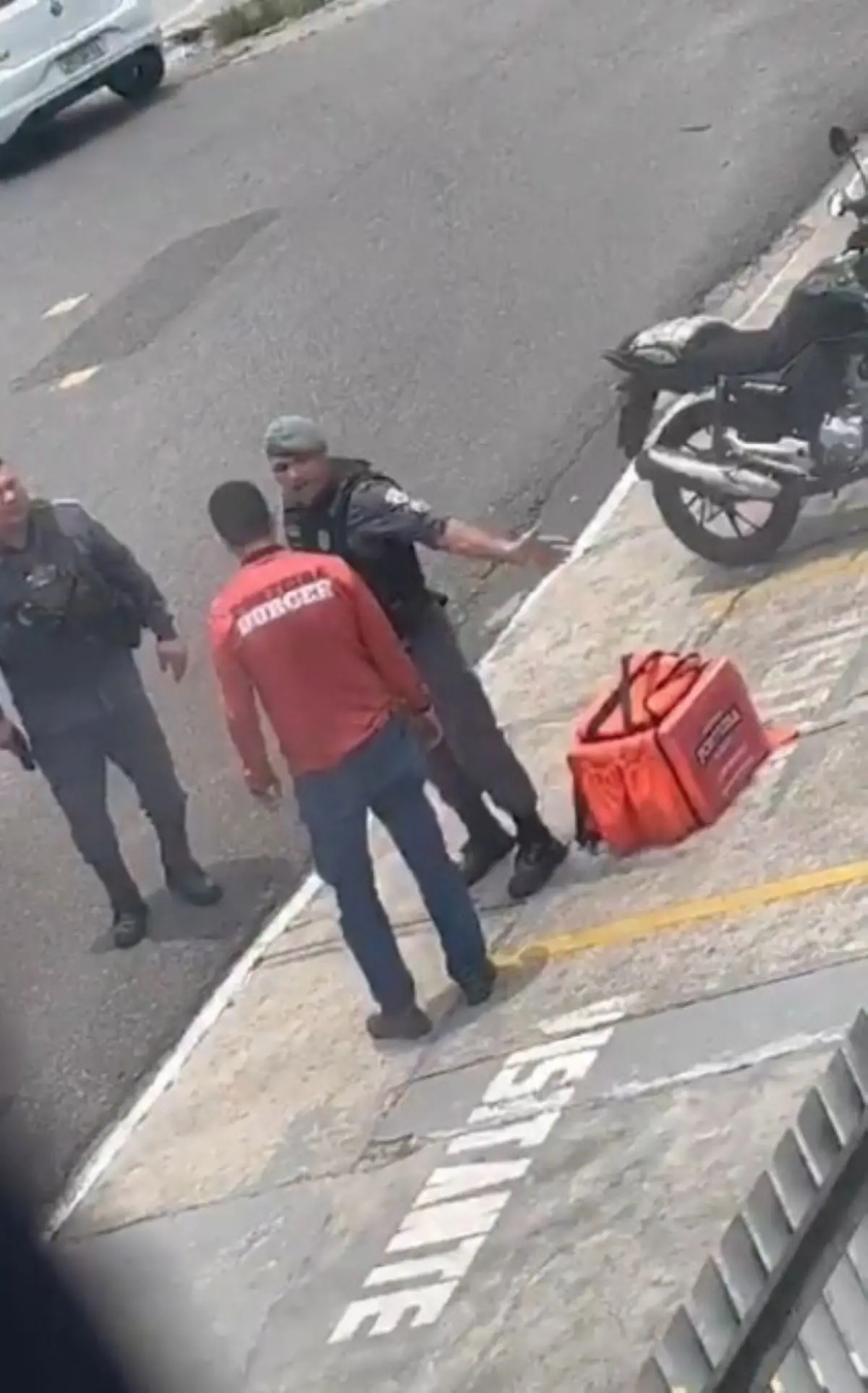 No vídeo que circula nas redes sociais, é possível ver um dos policiais discutindo com o motoboy e pedindo, aos gritos e palavrões, os documentos dele. Ao lado, outro agente segura uma arma. Assim que o motociclista entrega a CNH, o policial rasga.