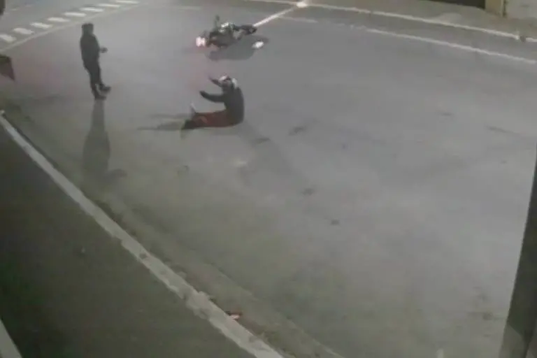 Um motociclista, de 40 anos, reagiu a uma tentativa de assalto, desarmando o suspeito, de 19 anos, e atirando contra ele. O caso aconteceu na noite do último domingo (23), no bairro Bom Retiro, região central de São Paulo, e foi registrado por câmeras de segurança próximas ao local.