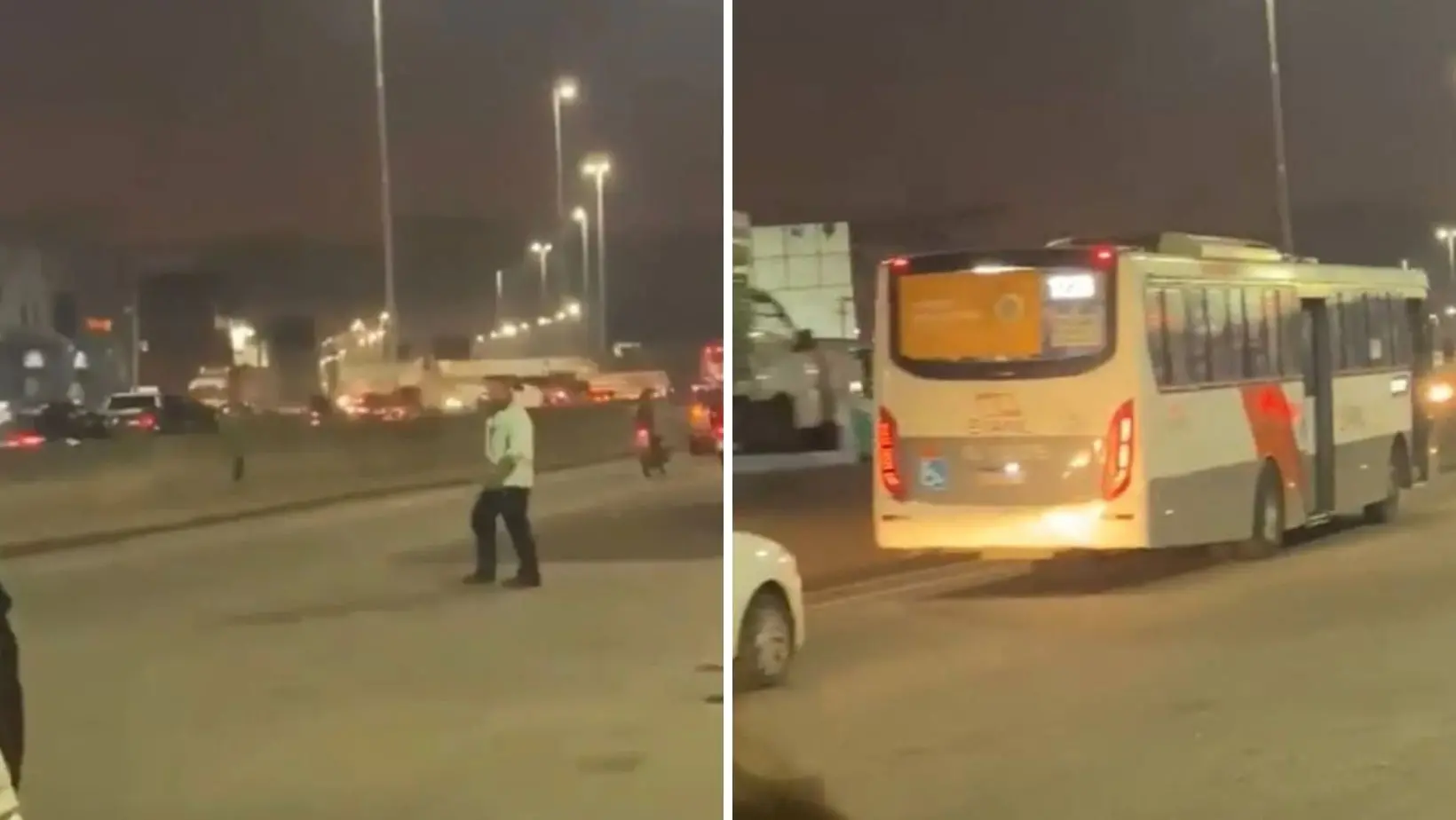"Motorista saiu do ônibus, ele dando tchau e pegou o outro ônibus. Ele foi embora e deixou o ônibus aqui", dizia a pessoa que gravou o vídeo.
