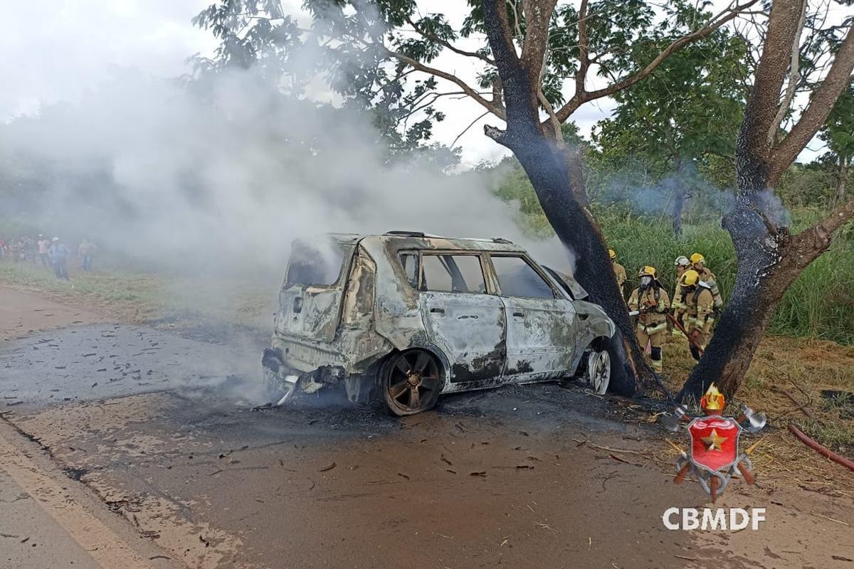 O Corpo de Bombeiros Militar do Distrito Federal informou que o carro foi encontrado ainda em chamas e que uma das vítimas estava caída do lado de fora, com múltiplas lesões e em óbito. Na operação para combater o incêndio, os bombeiros encontraram outra vítima carbonizada.