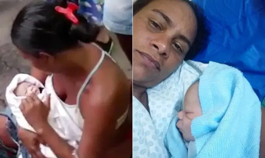 Porém, saindo do hospital, a mulher, que estava acompanhada do pai da criança, Edgard Santos, deu à luz. "Meu irmão [João Gabriel] chegou a bater com a cabeça no chão. Ele está bem. Graças a Deus, não foi uma pancada forte, já que minha mãe já estava arriada, mas na hora que ela fez força, ele nasceu e bateu a cabeça", relatou Flávia.