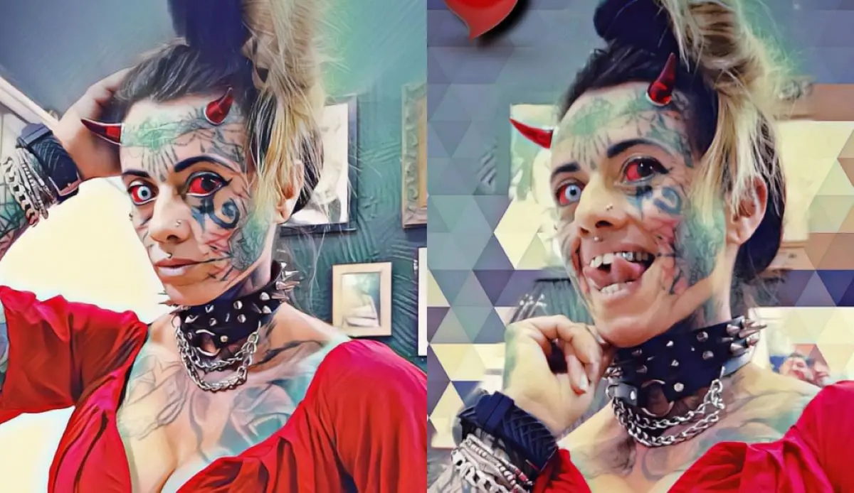 'Mulher Demônia', esposa do 'Diabão', tem prótese de chifre e língua partida; veja antes e depois