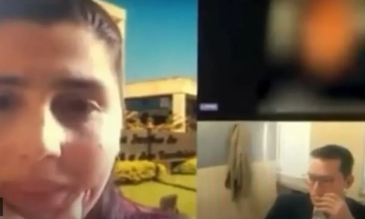 A vítima disse que estava em Taguatinga, mas foi interrompida pelo homem ao seu lado: “É videoconferência. Não quero saber de conversa, não”.