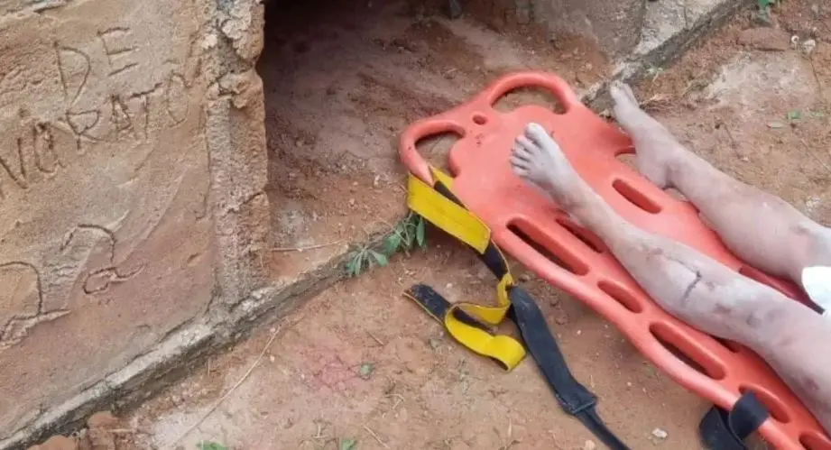 A mulher foi resgatada por Policiais Militares após ser enterrada com vida em um cemitério em Visconde do Rio Branco, em Minas Gerais.