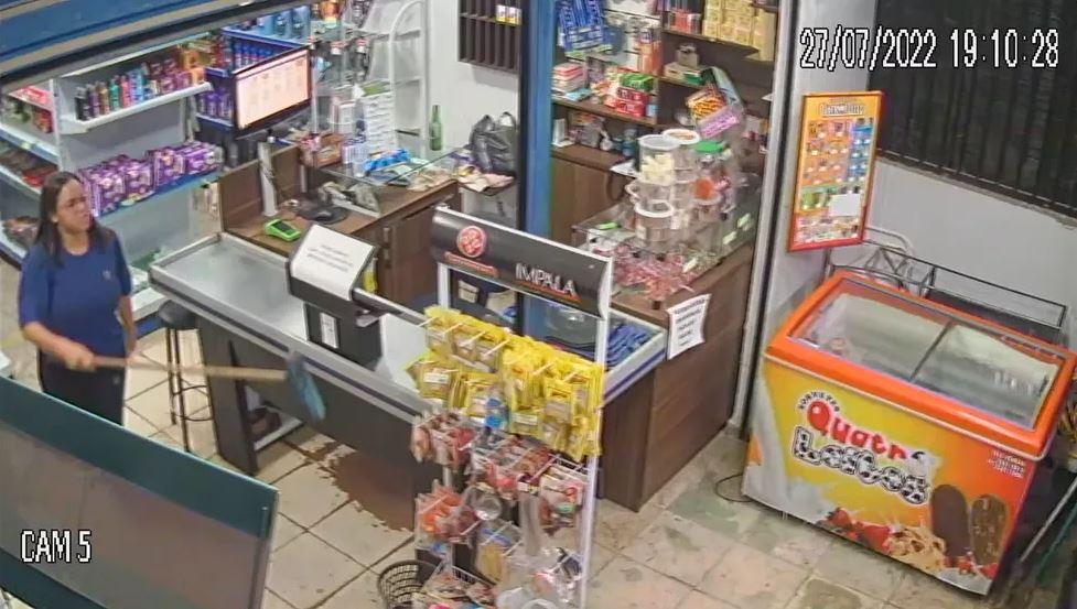 Uma mulher reagiu a um assalto e expulsou um ladrão a vassouradas em uma loja na região da Fercal, no Distrito Federal, na noite da última quarta-feira (27).