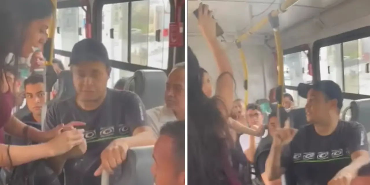 Ela gravou um vídeo confrontando o homem e publicou em suas redes sociais. "Safado, cretino, assediador! Eu indo trabalhar e ele me filmando, tirando foto minha", disse, mostrando as imagens capturadas pelo homem para os outros passageiros.