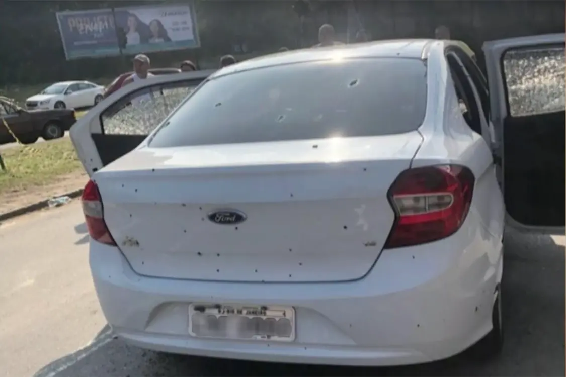 A Polícia Civil realizou a perícia no local e constatou mais de 80 tiros; não foi achada nenhuma arma com os ocupantes do veículo.