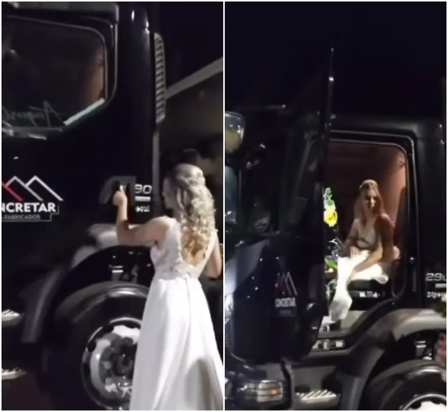Noiva chega em casamento dirigindo caminhão no RS