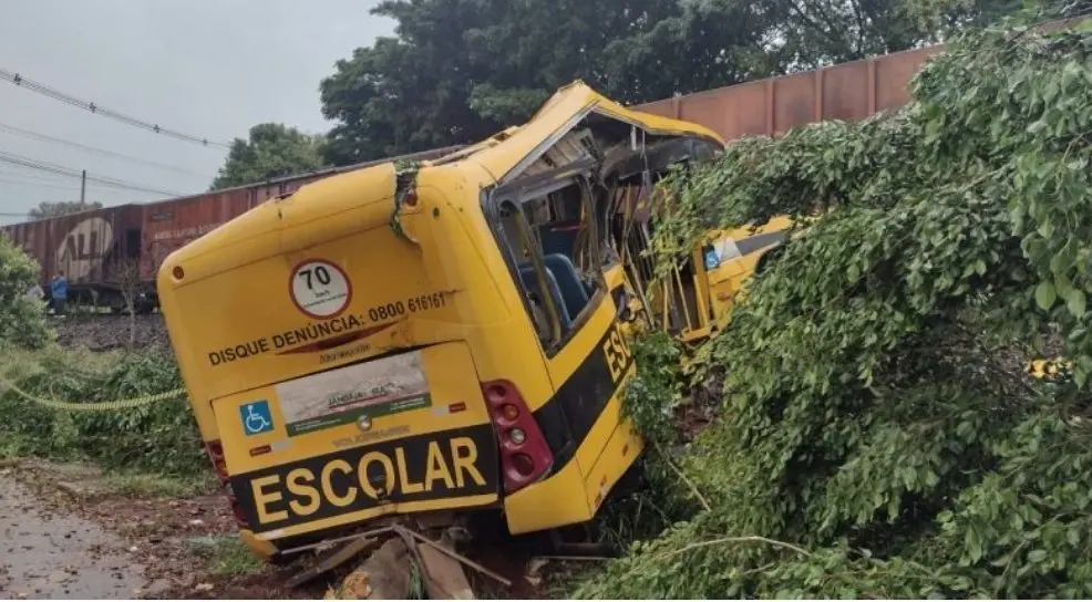 Um ônibus escolar foi atingido por um trem no fim da manhã dessa quinta-feira (9). O veículo escolar pertence à Associação de Pais e Amigos de Excepcionais (Apae) de Jandaia do Sul, norte do Paraná. Duas meninas morreram e mais de 20 pessoas ficaram feridas, entre monitores e estudantes da instituição.