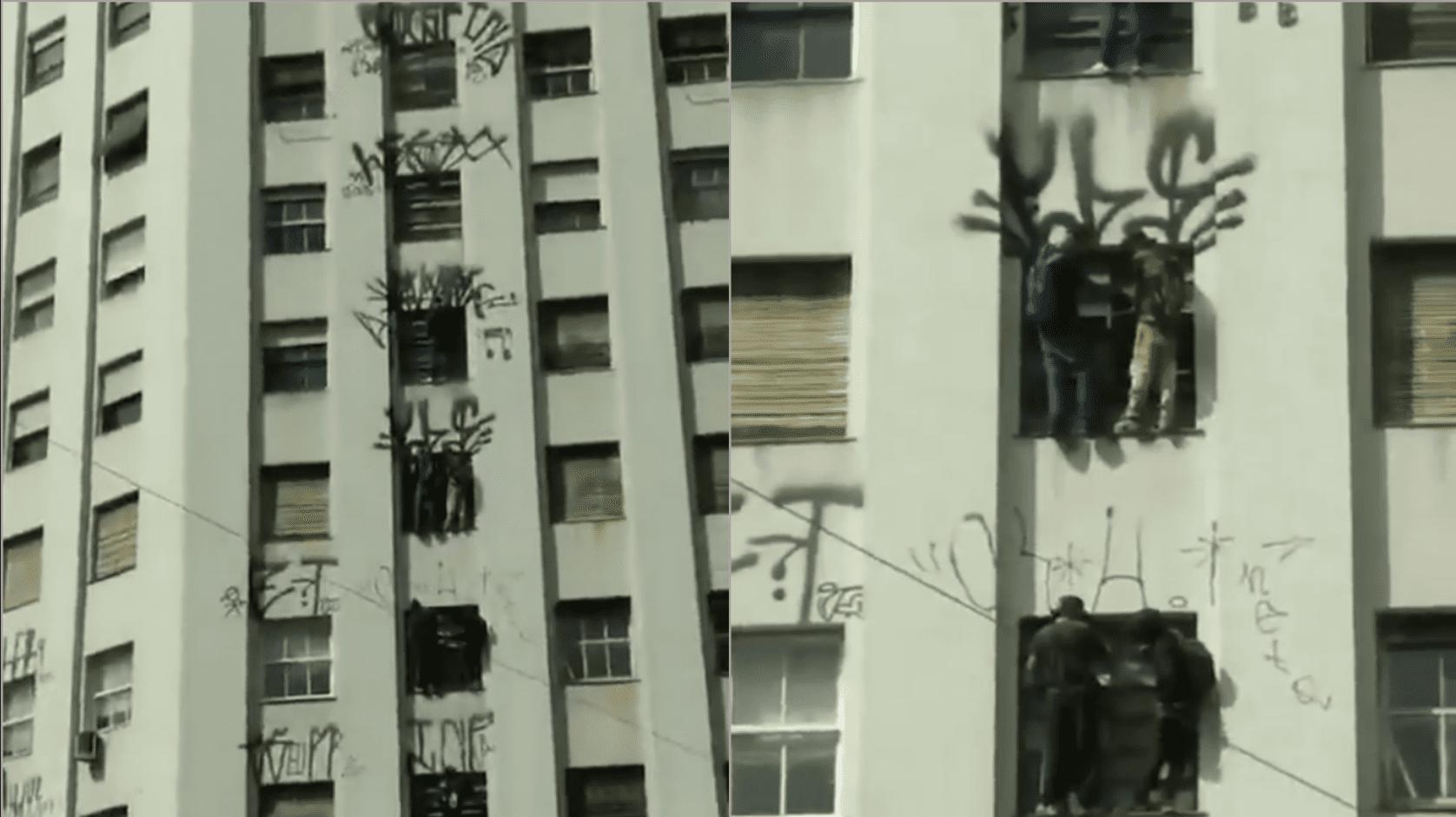 Oito homens picham prédio em SP, não conseguem descer e são presos