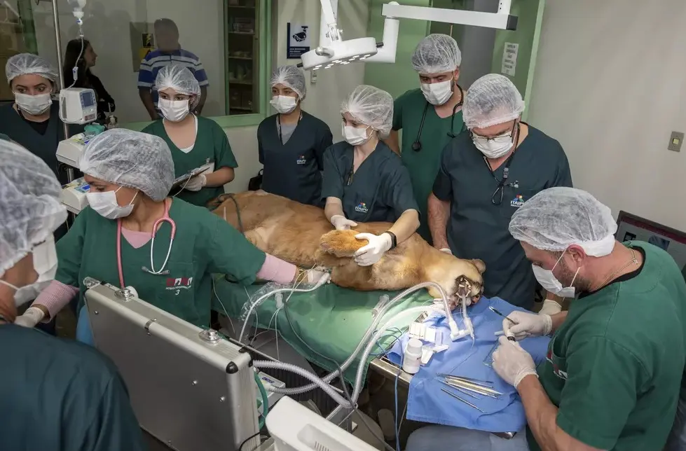 Além disso, ainda encontraram evidências de que a onça foi alvo de caçadores quando era filhote. Apesar dos riscos, os veterinários optaram por um tratamento intensivo com inserção de uma placa, um pino e 16 parafusos na perna.