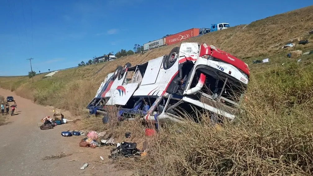 O veículo saiu de São Paulo na manhã deste domingo com destino ao Ceará, capotando em ribanceira de 20 metros