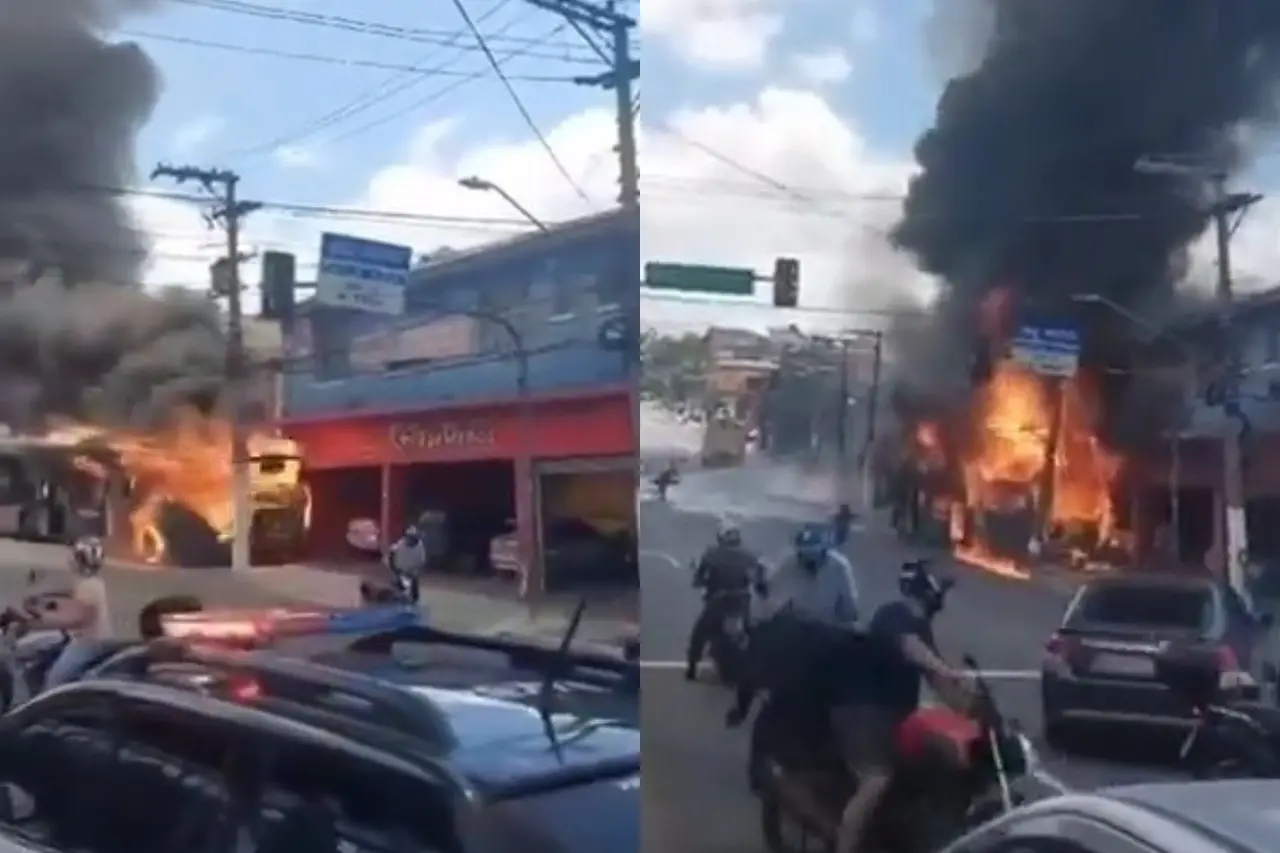 Ônibus pega fogo, desce avenida desgovernado e bate em poste em São Paulo; veja vídeo