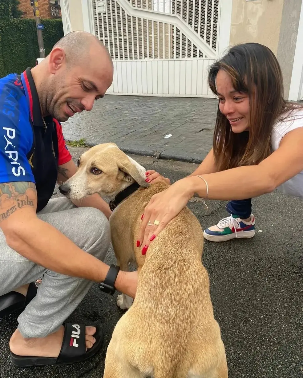 Ao reencontrar seu animal, Reinaldo Júnior abraçou Pandora e ficou emocionado e sem palavras para descrever o momento. “Sempre acreditei que a reencontraria. É um dia muito especial”.