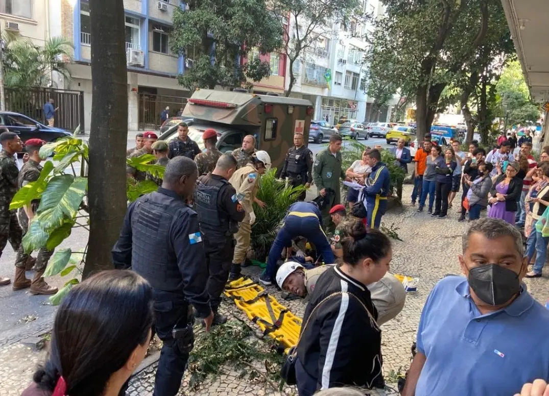 A segunda ocorrência dos bombeiros foi registrada às 16h. Eles foram acionados e socorreram o suboficial da Aeronáutica, Roberto Pereira, de 40 anos. A vítima caiu em um telhado de um imóvel de Ipanema.
