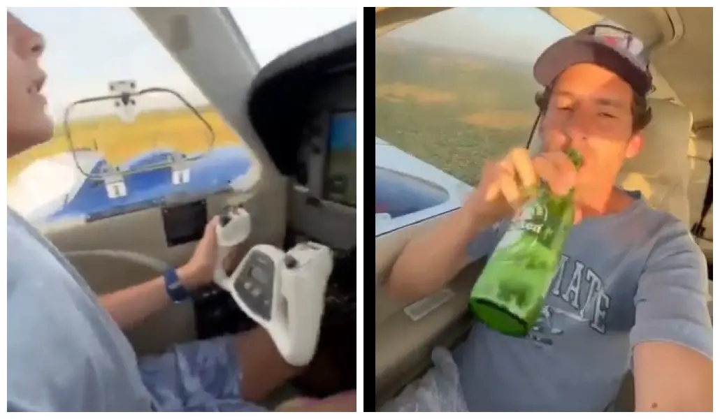 O pai pergunta ao filho se está tudo certo, e o menino responde que sim. "Meu piloto, boa", elogia Garon, que depois filma a si mesmo dando goles numa garrafa de cerveja e com outra entre as pernas. "Passageiro pode consumir uma né, Kiko?", ressaltou Garon.