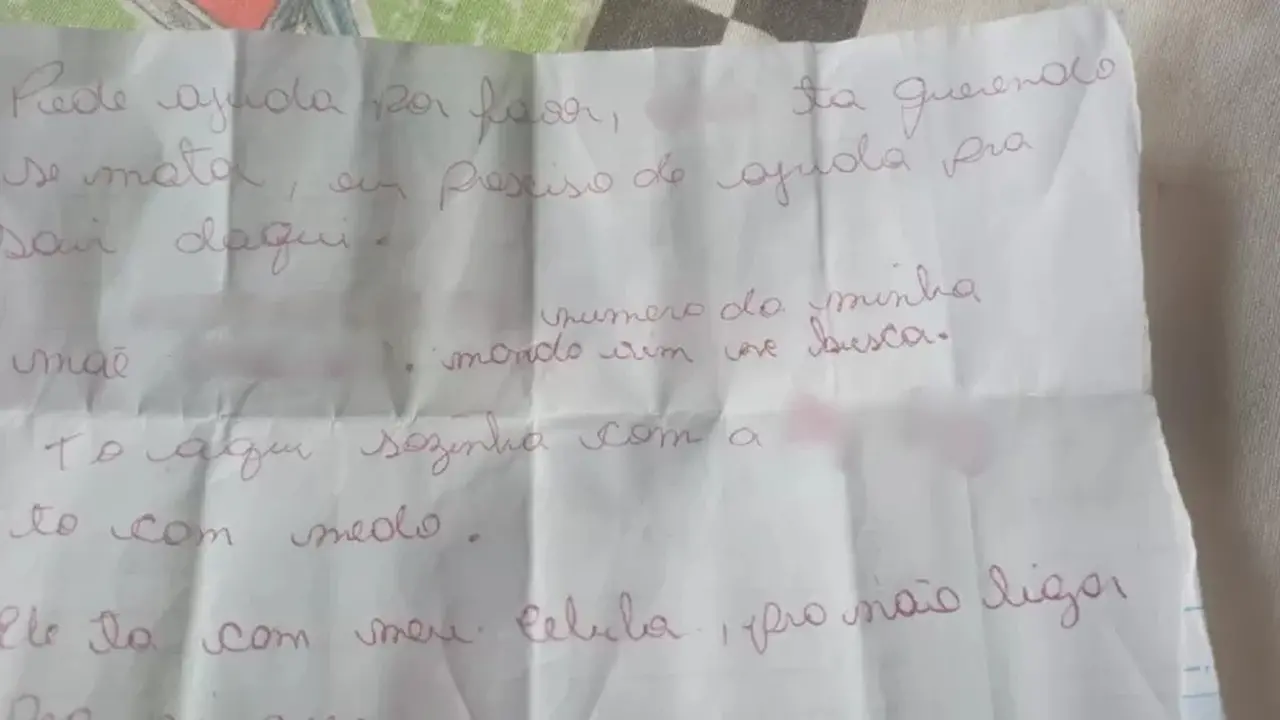 Na quinta-feira, após o suspeito se distrair, a mulher conseguiu jogar um bilhete por cima do muro, em direção à casa vizinha. "Pede ajuda, por favor. Ele tá querendo me matar. Eu preciso de ajuda para sair daqui", disse no bilhete.