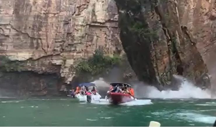 Uma pessoa que passeava pelo local chegou a filmar o momento em que uma enorme pedra despencou e atingiu pelo menos três lanchas. As imagens são assustadoras e indicam a possibilidade de haver diversos feridos.