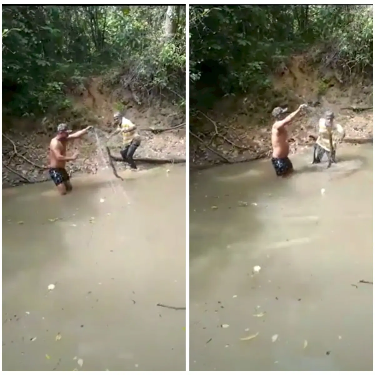 No vídeo, que foi parar em diversas páginas nas redes sociais, é possível ver o momento em que os amigos puxam uma rede de pesca e capturam um poraquê (peixe-elétrico amazônico). Jorge, então, entra na água e agarra o animal com mão, em seguida, ele cai e só consegue levantar quando tem ajuda do seu amigo.