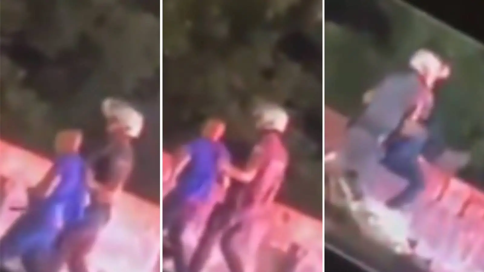 Pelas imagens, é possível ver três agentes da PM sobre a ponte. Um deles levanta uma moto do chão e a encosta na mureta. Outro aparece segurando pelas costas um homem usando uma camiseta azul. A gravação registra o momento em que o oficial levanta o indivíduo pelas pernas e o joga do alto da ponte sobre um córrego. Na sequência, o corpo de um homem aparece boiando nas águas do córrego.