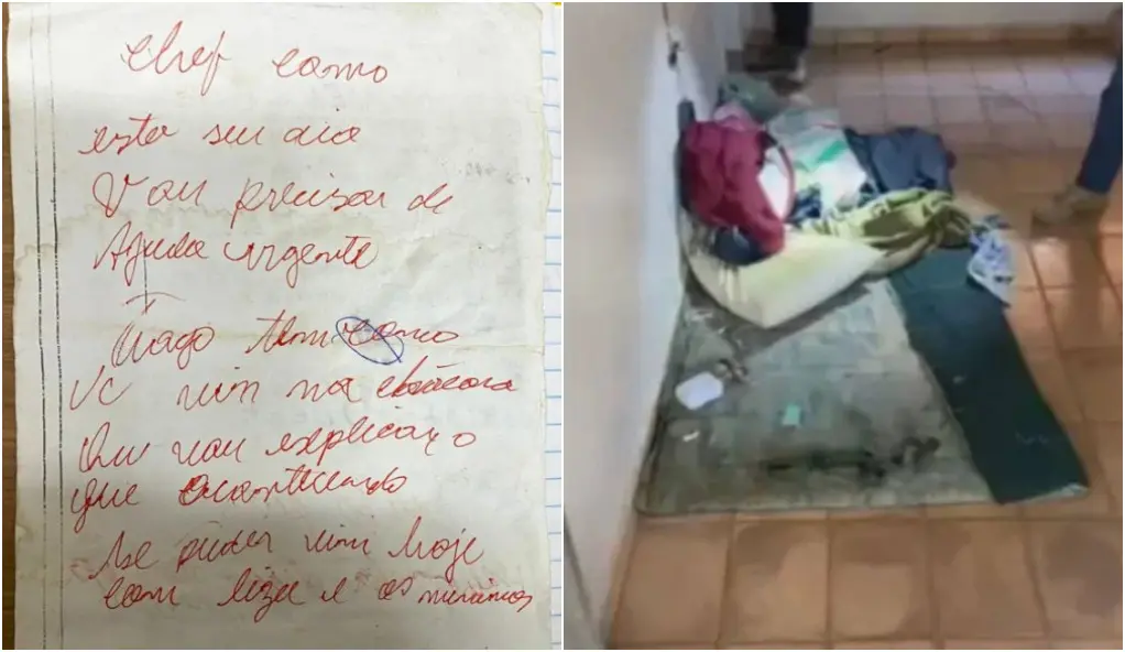 "Chefe, como está seu dia? Vou precisar de ajuda urgente. Thiago, tem como você vir na chácara, que vou explicar o que (está) acontecendo. Se puder vir hoje, com Elizamar e os meninos", diz o bilhete.
