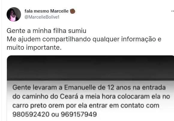 A criança é moradora da comunidade da Carobinha, em Campo Grande. Aos familiares ela enviou o texto: "Me ajuda, não estou na Carobinha, tem uma praça e uma lona, tá doendo muito".