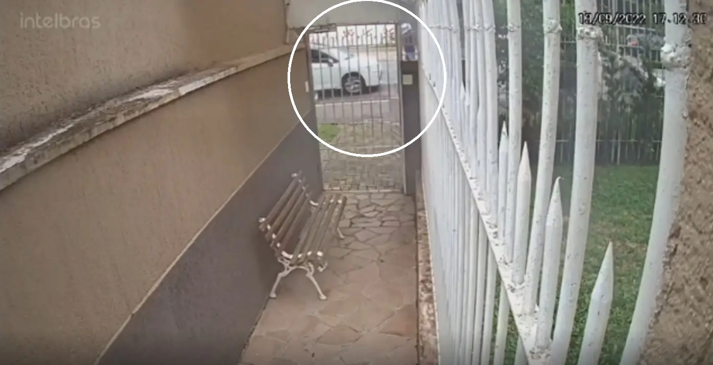 Na sequência, o homem atira várias vezes. O vídeo mostra ainda a motorista do carro dando marcha à ré para tentar fugir. Outra câmera registrou o momento em que o carro bate em um outro veículo, que vinha atrás. Em seguida, uma jovem aparece correndo pela rua.