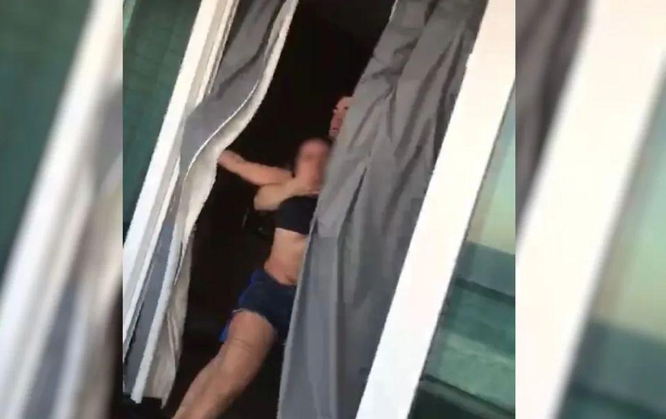 Um vídeo gravado da sacada do quarto onde o casal estava capturou a violência. O policial aparece sem camisa gritando com a companheira, que estava sentada e encolhida contra a parede.