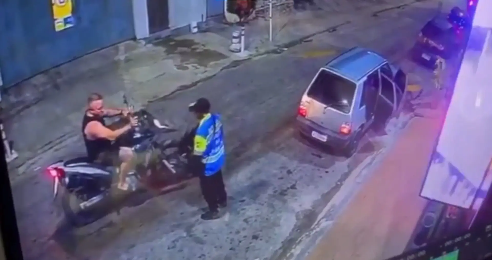 A ação foi registrada por câmeras de segurança. Os bandidos invadiram um depósito de bebidas e estavam roubando as mercadorias, quando Henry passou na rua e viu um suspeito armado. Pelas imagens, é possível ver o inspetor parando a moto para falar com o assaltante.