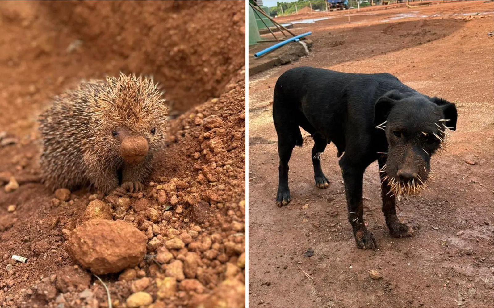 Porco-espinho reage a ameaça e ataca cachorros em Minas Gerais