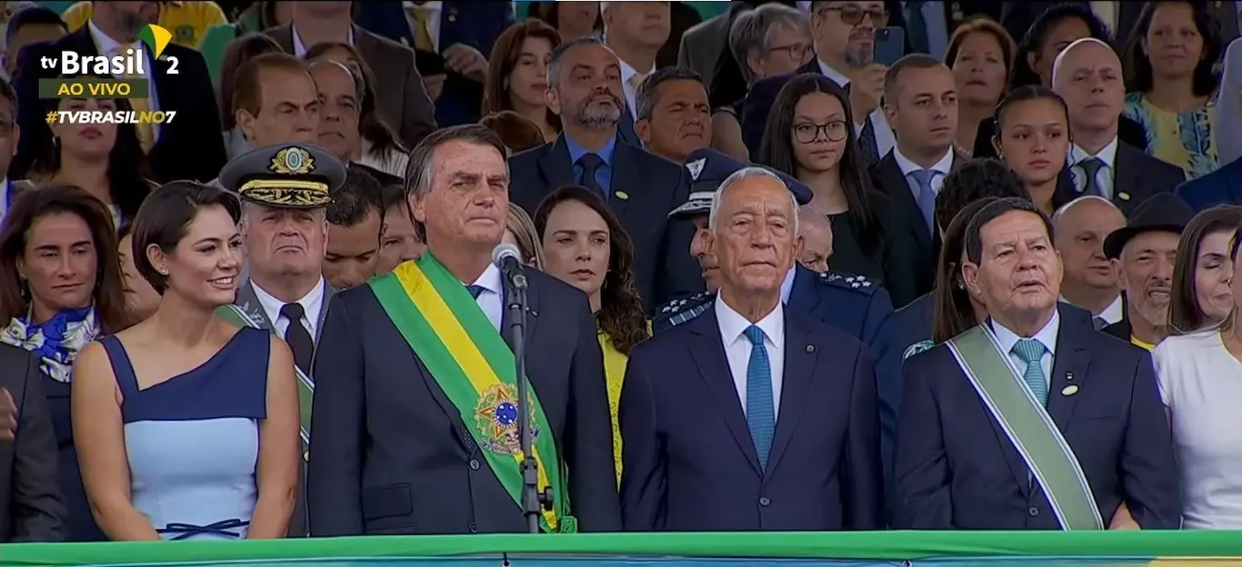 O presidente de Portugal, Marcelo Rebelo, assistiu ao desfile cívico-militar comemorativo ao bicentenário da Independência do Brasil nesta quarta-feira (7) ao lado do presidente Jair Bolsonaro (PL). Além dele, outros chefes de Estado de dois países de língua portuguesa, o vice-presidente Hamilton Mourão, ministros do governo federal e outras autoridades também compareceram.
