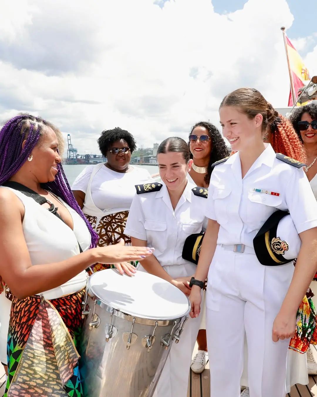 O momento foi publicado pelo perfil oficial da Casal Real da Espanha no Instagram: "A Princesa das Astúrias, com o grupo feminino de percussão da escola Pracatum que hoje de manhã interpretou uma batucada por ocasião da chegada do Navio Escola 'Juan Sebastián de Elcano' ao porto de Salvador da Bahia (Brasil)".