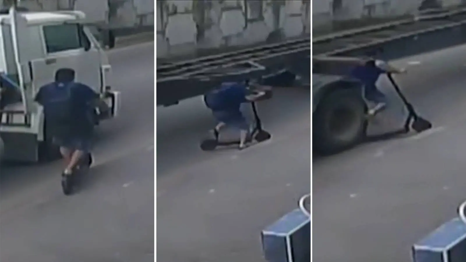 Professor morre atropelado por caminhão após cair de patinete no Paraná; veja vídeo