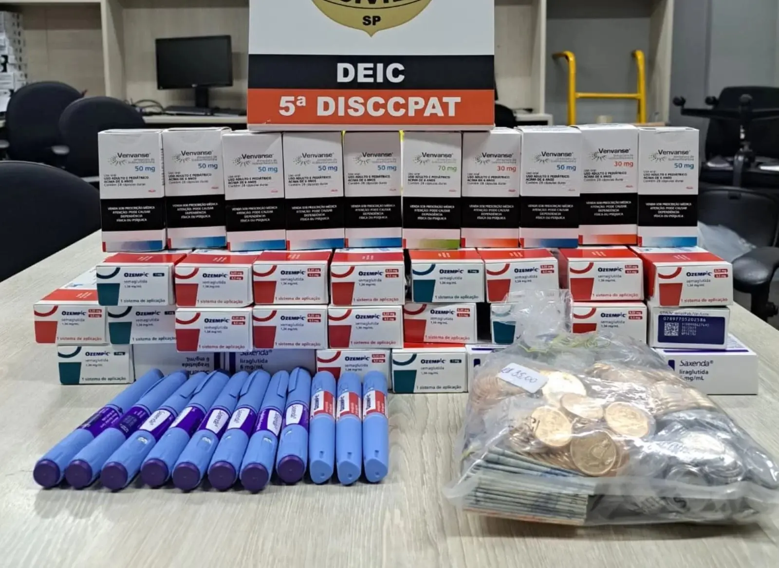 O foco da quadrilha são remédios para emagrecimento e déficit de atenção, afirmou a SSP. A investigação ficou a cargo da Divisão de Investigações sobre Crimes contra o Patrimônio (DISCCPAT)