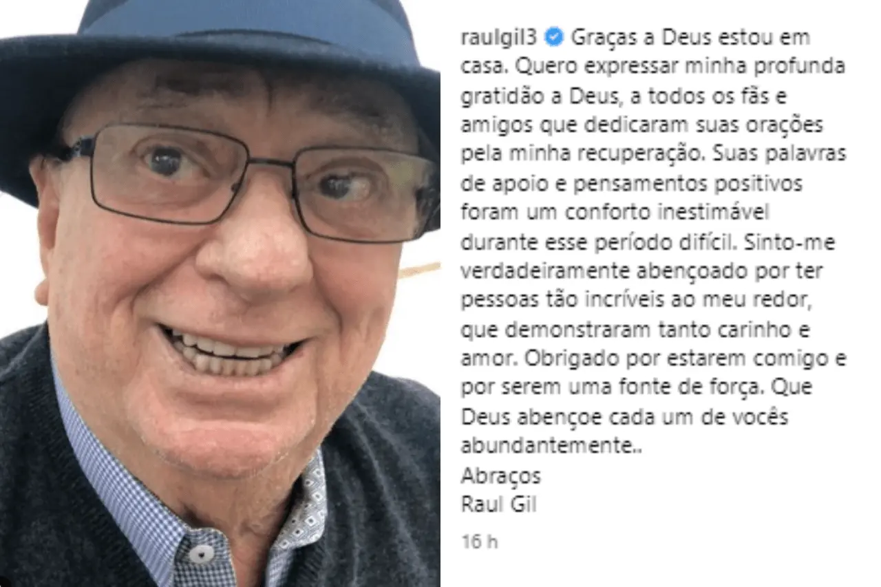 O filho do apresentador também agradeceu o trabalho da equipe de saúde, em especial o médico Sérgio Filisola. "Muito competente e cuidou bem do meu pai durante todo o processo. Estamos confiantes de que, com os cuidados adequados e o tempo de repouso necessário, ele se recuperará rapidamente".