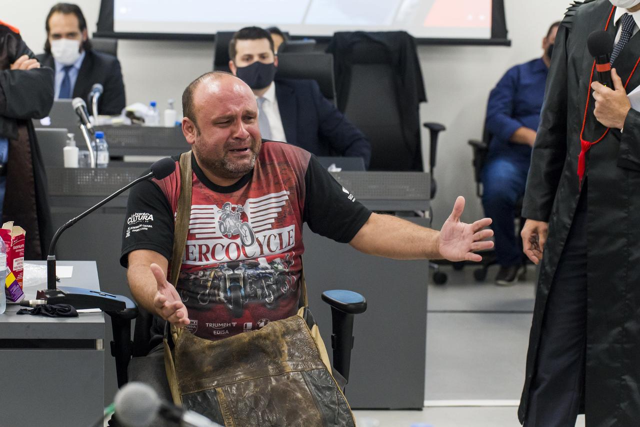 No primeiro dia de julgamento, Luciano Bonilha chegou ao Foro Central aos prantos.