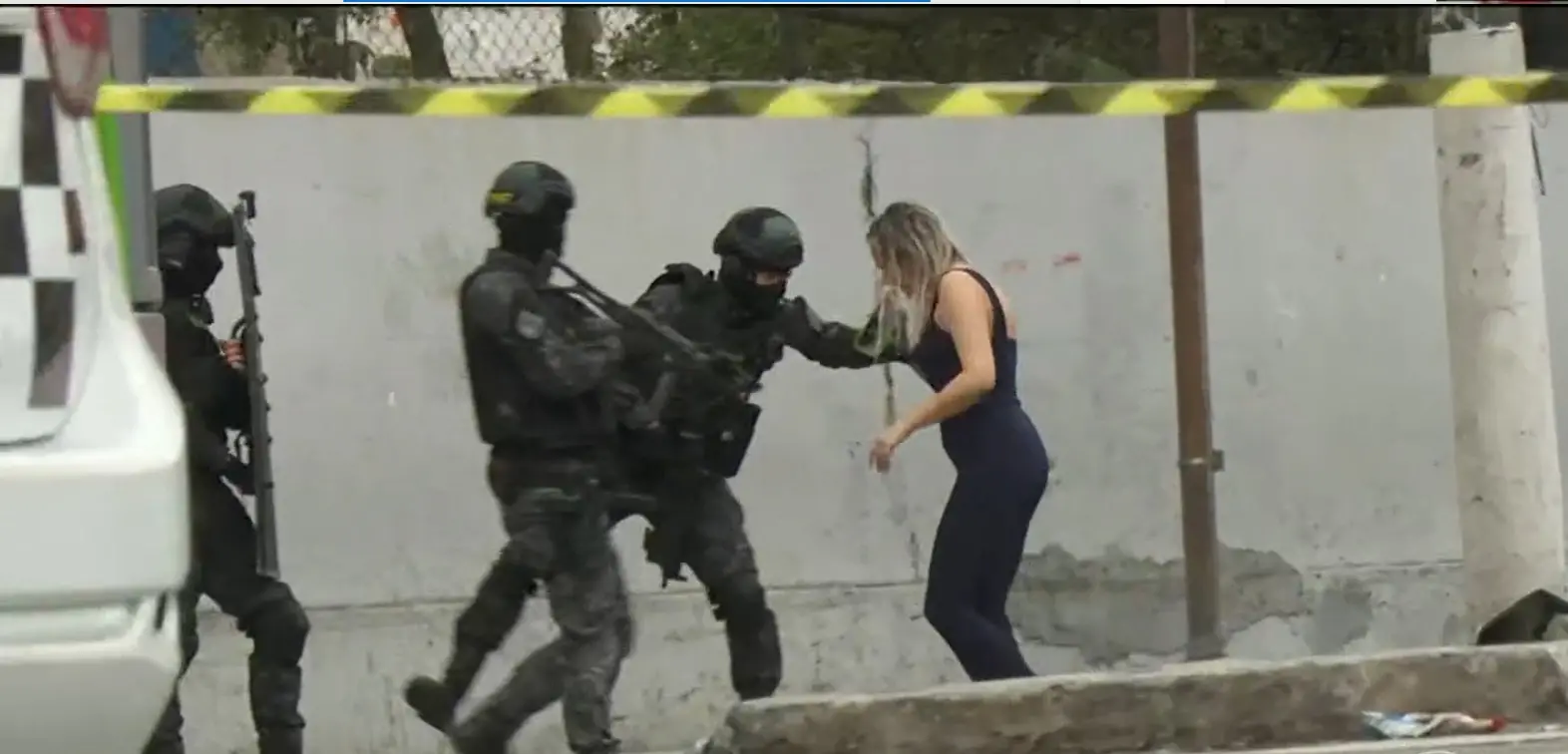 Um robô da corporação foi usado na operação. Em alguns momentos, o equipamento apareceu segurando uma garrafa de água e um cigarro que foi levada até o banco de trás do carro. E alguém depois os pegou.