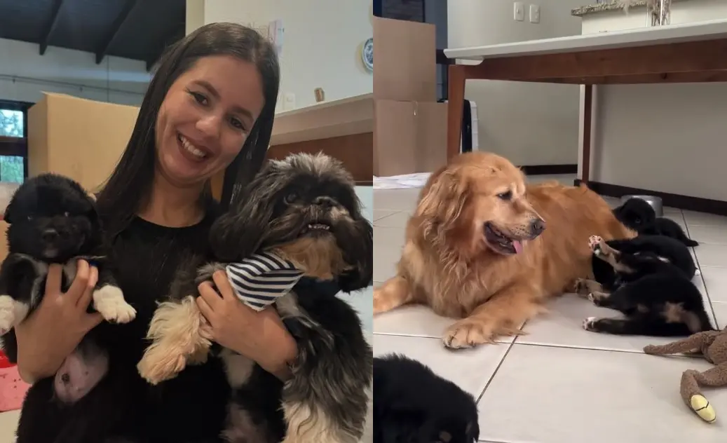 Os tutores da golden Nina descobriram que a cachorra, que deu à luz em 20 de setembro, engravidou após a família voltar de uma viagem de férias aos Estados Unidos.