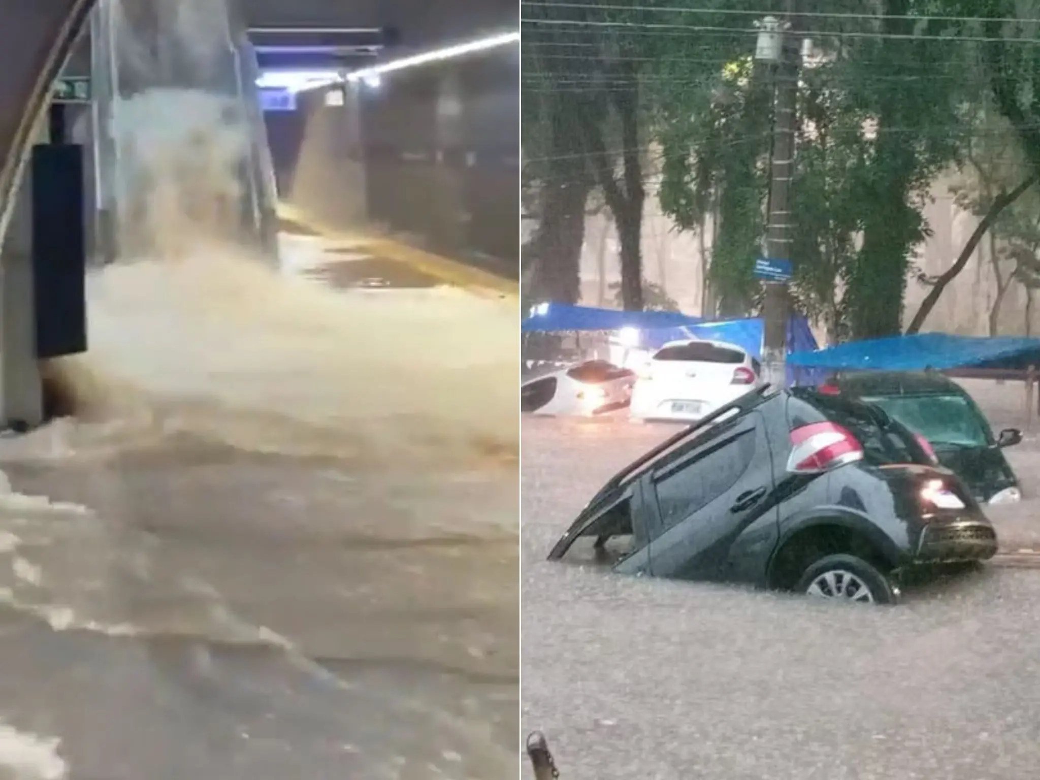 Conforme vídeos que circulam nas redes sociais, a forte chuva provocou uma série de transtornos na cidade, como alagamentos em estações do metrô e carros ilhados no bairro Jardim São Paulo.