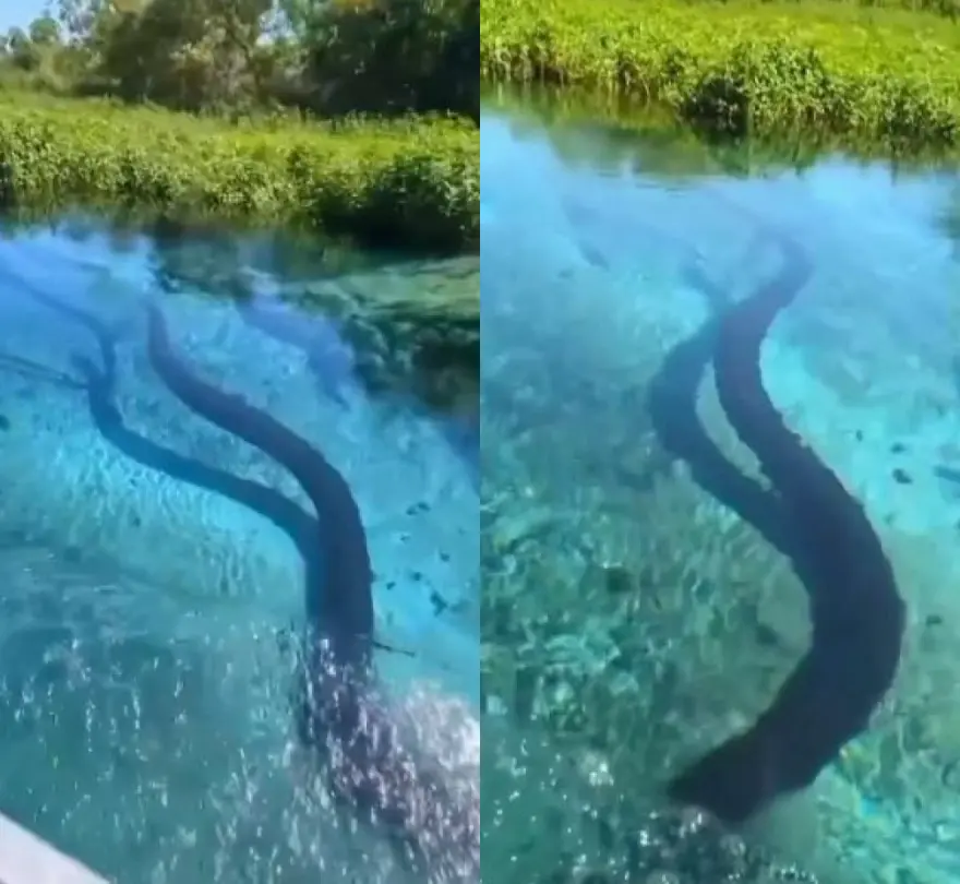 Sucuri gigante surpreende turistas durante passeio no Mato Grosso do Sul; veja vídeo