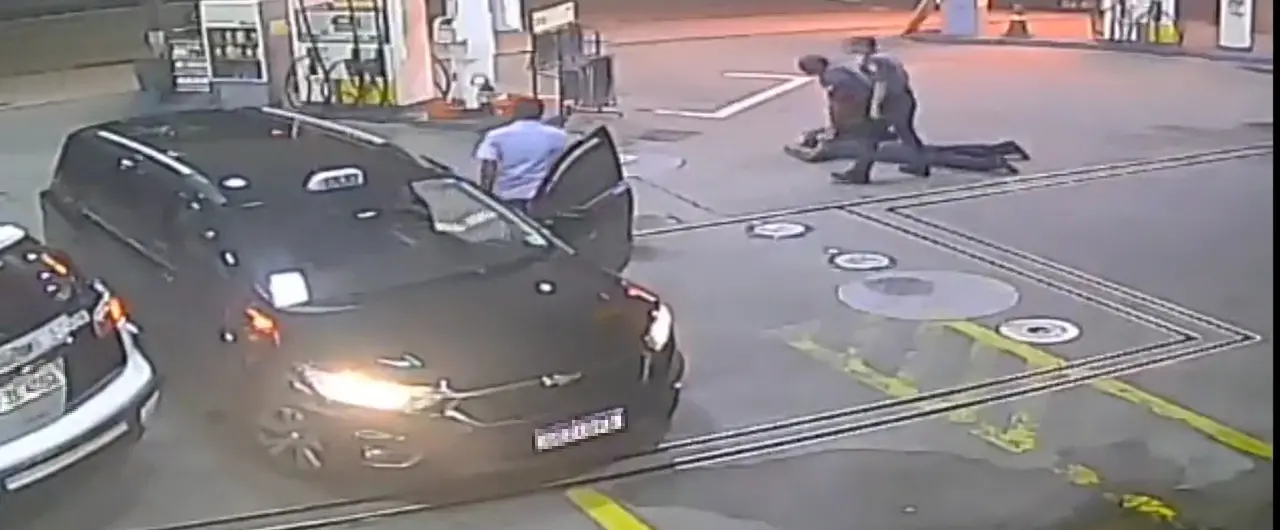Dois homens, de 32 e 39 anos, entraram no táxi e anunciaram o assalto a mão armada, fazendo o motorista refém. O taxista avistou uma viatura da PM em um posto de gasolina e se chocou contra o carro.