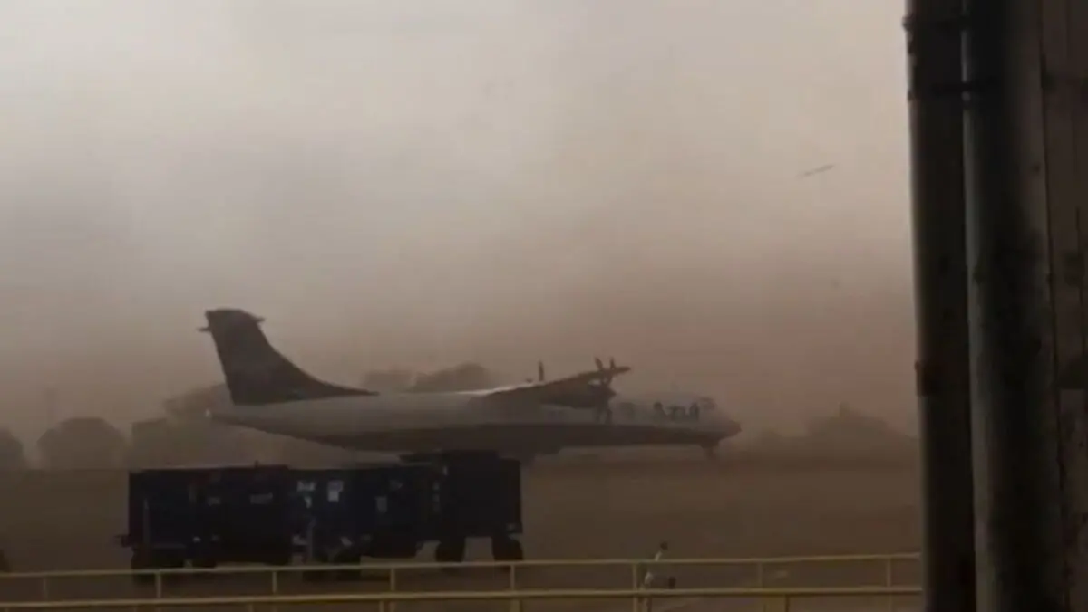 Conforme informações da plataforma RadarBox, a aeronave chegou às 14h53, em um voo que vinha da cidade paulista de Campinas (SP). Ventos de 18km/h, chegando ao um pico de 55km/h após as 18h e rajadas de até 92km/h foram registradas. Segundo relatos nas redes sociais, a nuvem de poeira se formou a partir das 15h30.