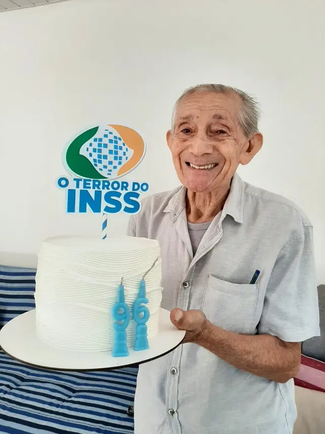 A família do idoso decorou um bolo com a frase "Terror do INSS", e a imagem gerou milhões de compartilhamentos. As informações são do G1.