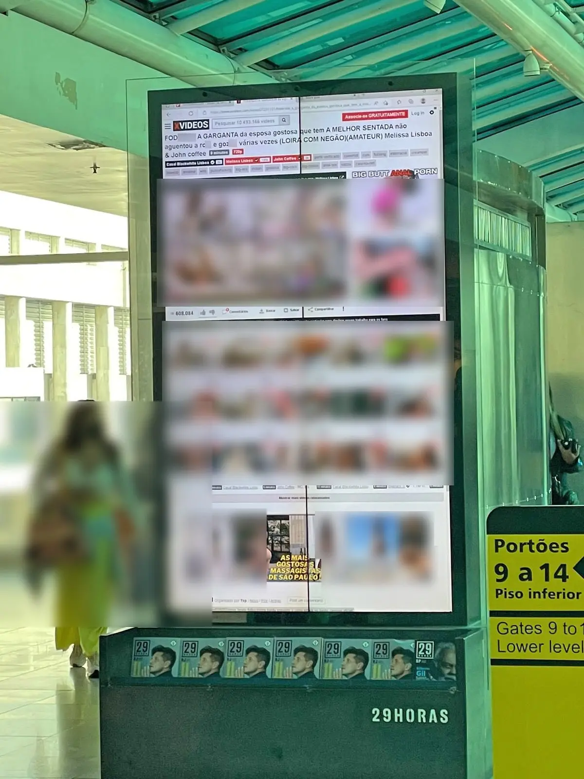 O totens digitais — televisores verticais utilizados para exibição de publicidade ou para serviços de autoatendimento — do Aeroporto Santos Dumont, no Rio de Janeiro, foram hackeados, na manhã desta sexta-feira (27). Os invasores substituíram as propagandas por filmes pornográficos.
