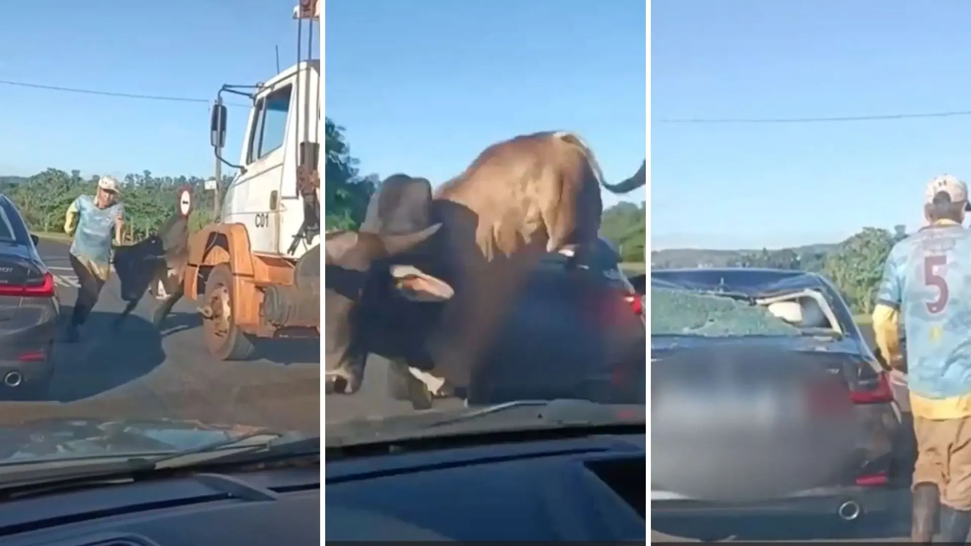 Um vídeo do incidente foi registrado por uma motorista e viralizou nas redes sociais. Nas imagens, é possível ver o touro solto, perto de uma cerca. O animal fica agitado e corre atrás de um homem.
