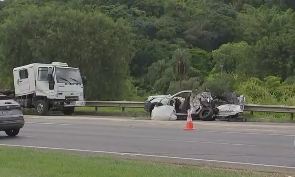 A Polícia Rodoviária informou que as vítimas fatais foram identificadas como o motorista do carro e três funcionários que carregavam o caminhão.