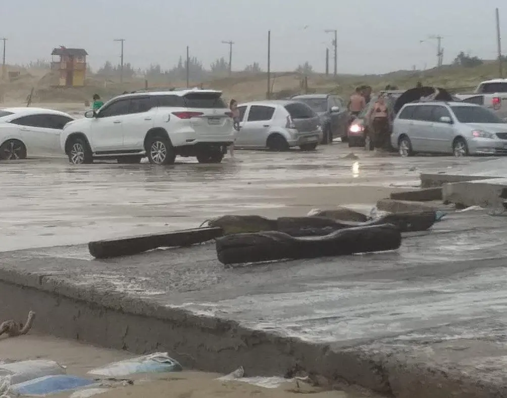 Tsunami meteorológico arrasta carros em praia de Santa Catarina; veja vídeo