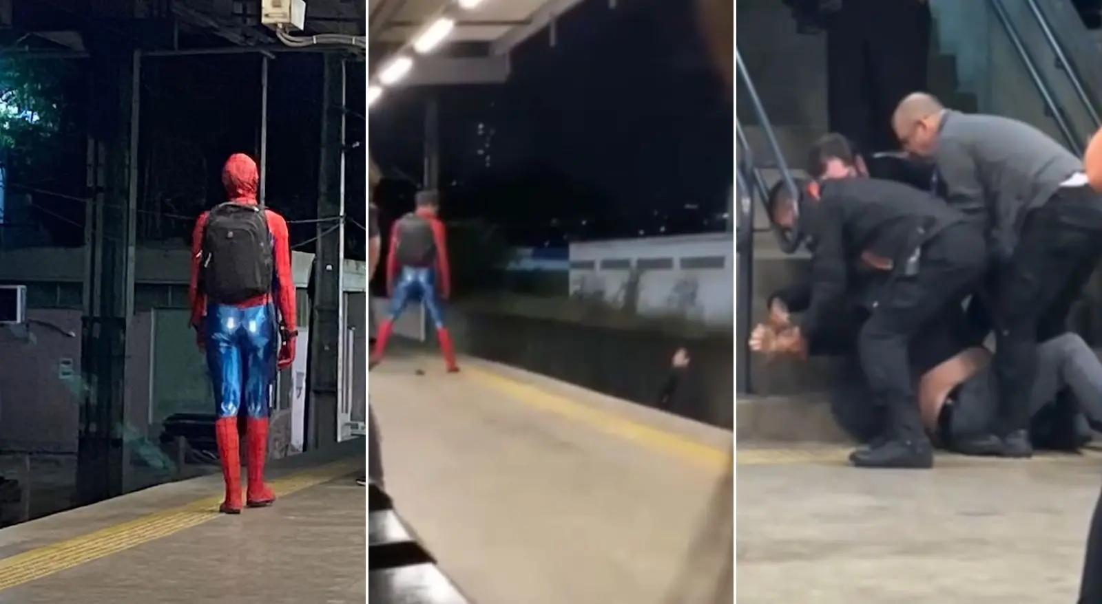 Vestido de Homem-Aranha, recreador briga e empurra agressor em trilhos do metrô de BH